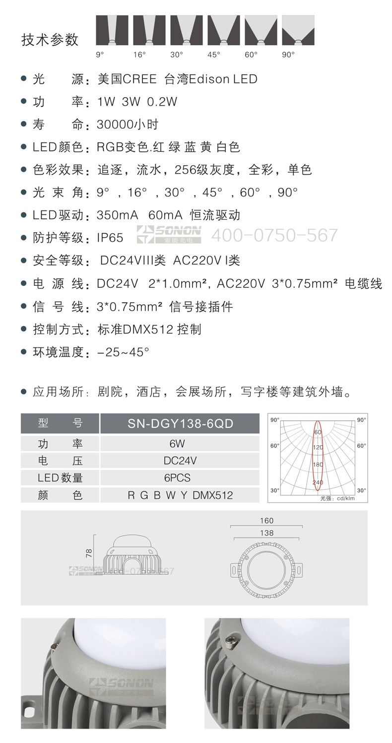 l光束角:9°,16°,30° 45°,60°,90°;