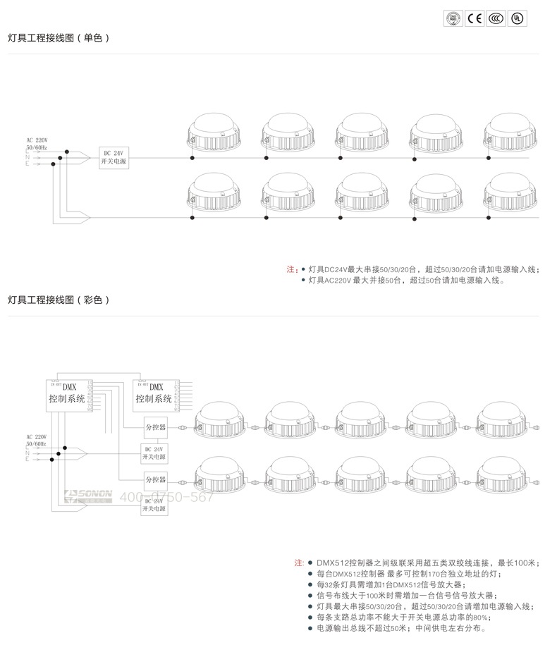 l燈具最大串接50/30/20臺,超過50/30/20臺請增加電源輸入線。