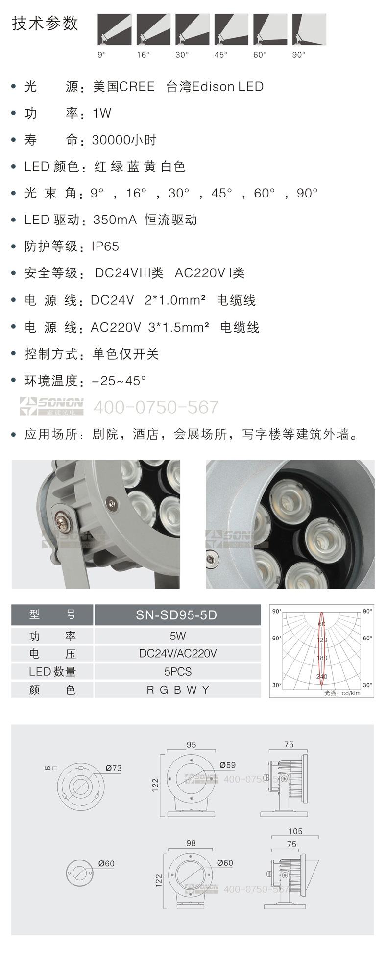 l光束角:9°,16°,30° 45°,60°,90°;