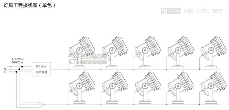 l燈具DC24V最大并接30/15臺,超過30/15臺請加電源輸入線。