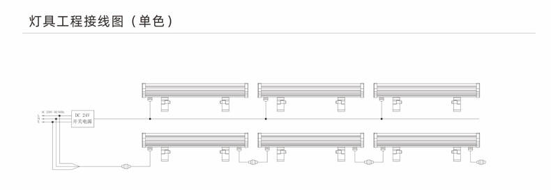 1、燈具DC24V并接不超過15/10/8臺,超過15/10/8臺請增加電源輸入線;