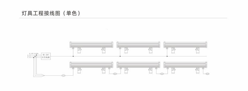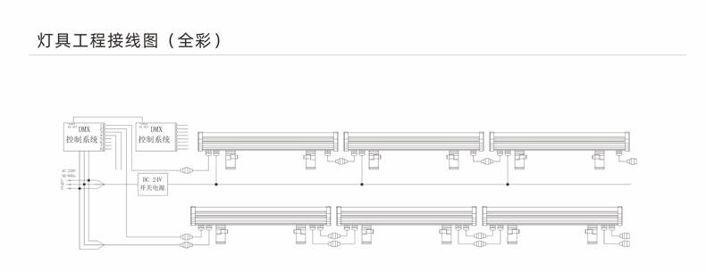 1、燈具DC24V并接不超過15/10/5臺,超過15/10/5臺請增加電源輸入線;